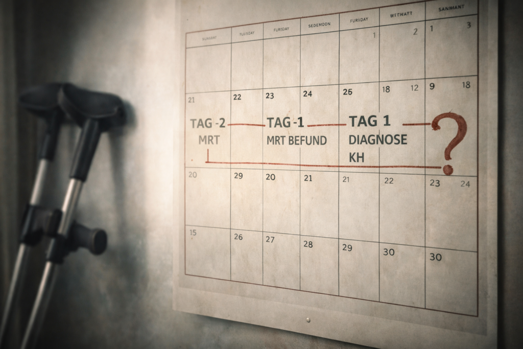 - Die AU-Falle im Krankenhaus: Krankenhäuser stellen bei einer ambulanten Diagnose oft keine automatische Krankschreibung (AU) für den Arbeitgeber aus. Wichtig: Frag direkt nach einer „Bescheinigung über den Krankenhausaufenthalt“ oder einer Erstbescheinigung. Wenn das vergessen wurde, geh am nächsten Werktag sofort zu deinem Hausarzt oder Orthopäden, um die Lücke zu schließen.